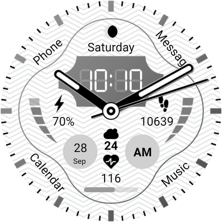 سیمسنگ کی طرف سے ون UI واچ کے ساتھ Wear OS کے لیے ڈیزائن کیا گیا واچ فیس۔