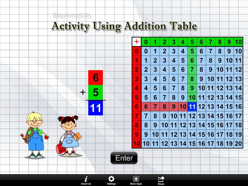 Lite version of Interactive app to help learn Activity Using Addition Table