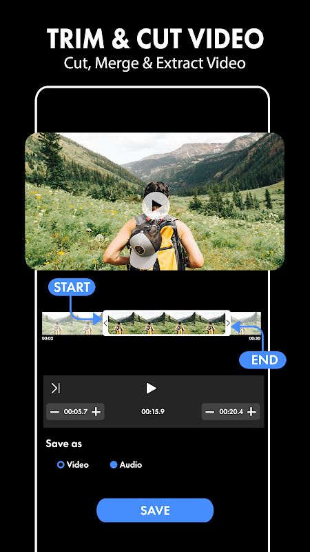 یہ ایپلی کیشن آپ کو کسی بھی ویڈیو میں آڈیو شامل کرنے دیتی ہے۔ آڈیو ویڈیو مکسر کسی بھی ویڈیو فائلوں کا بیک گراؤنڈ میوزک تبدیل کرنے کی سہولت فراہم کرتا ہے۔ یہ ایپلی کیشن آڈیو فائل کا سائز سنبھالتی ہے اگر آڈیو فائل کی لمبائی ویڈیو فائلوں سے زیادہ ہو تو یہ خود بخود آڈیو کو ویڈیو کی مدت تک تراش دے گی۔