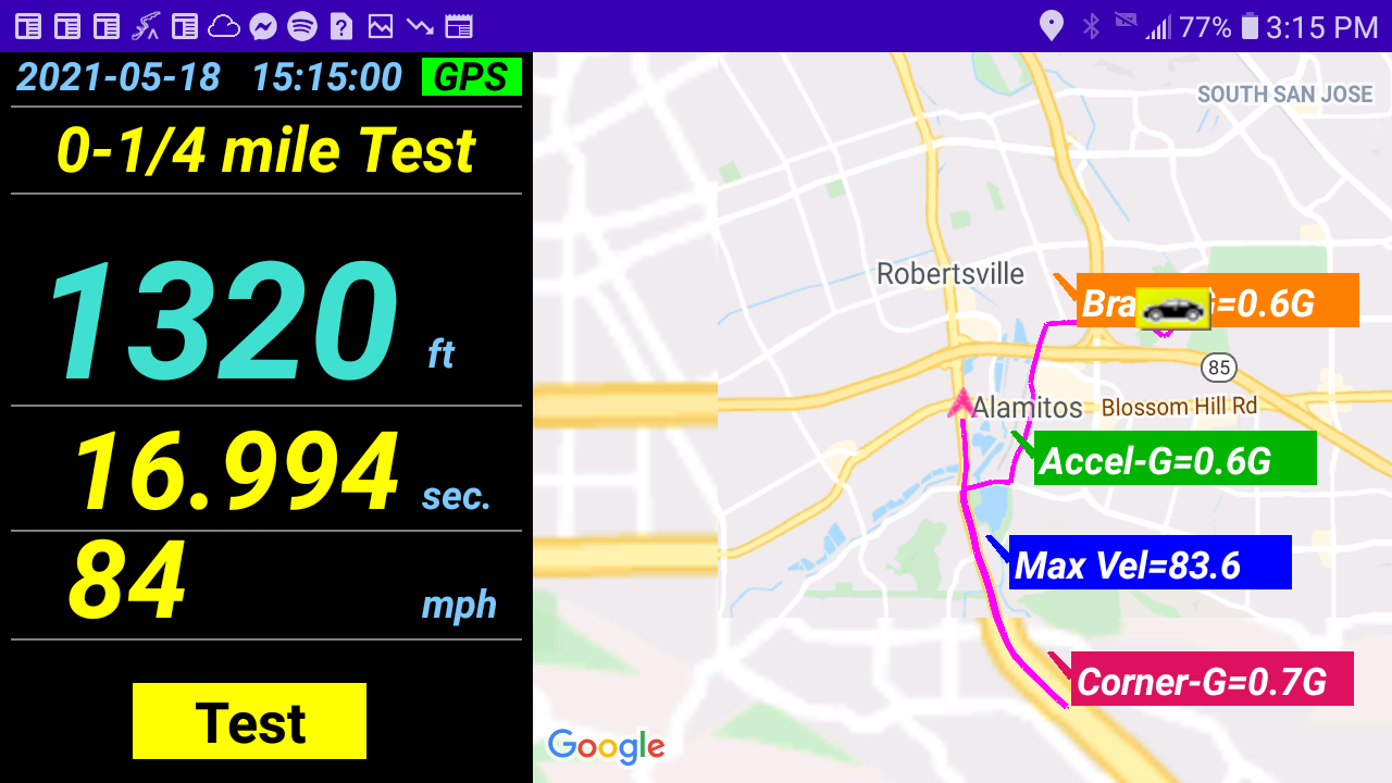 ڈریگ ریس پرفارمنس ٹیسٹر والے GPS پر مبنی روڈ ٹرپ کمپیوٹر اور ٹریک ایپ
