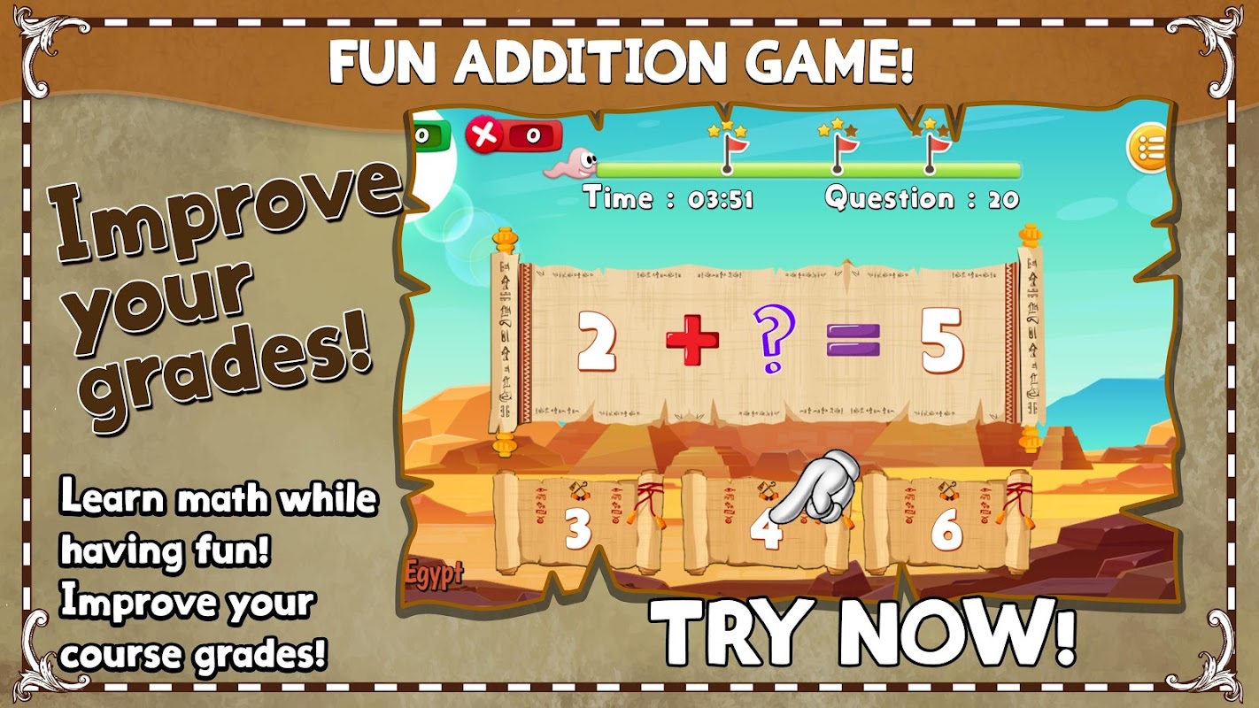 مصر کے گیزا اہرام میں پارچمنٹس میں ریاضی کے اضافے کو حل کرکے نئی سطحوں کو چالو کریں۔ وقت ختم ہونے سے پہلے ہی تمام پک اپ کو حل کرکے ستاروں کی ایک بڑی تعداد جمع کریں!