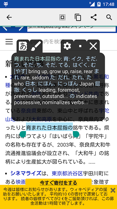 خود اپنے براؤزر میں جاپانی ویب صفحہ کھولنے کا تصور کریں ، یا اپنے پسندیدہ کتاب ریڈر میں جاپانی ناول پڑھ رہے ہیں۔ اچانک ، آپ کو ایک انجان کانجی کا سامنا کرنا پڑا۔ اب آپ کو اپنے فون کو لغت ایپ پر تشریف لانے کی ضرورت نہیں ہے ، اس پریسی کانجی کا ترجمہ کرنے کے لئے - بس ایک جاپانی جملے کو کسی کلپ بورڈ میں کاپی کریں اور تیرتے ہوئے ونڈو کو دیکھیں جب اس کے پاپ اپ ہوں گے اور کاپی کردہ متن کا تجزیہ کریں۔ ونڈو براؤزر / ریڈر کے اوپر تیرتا ہے ، جس سے آپ کو ناجائز کانجی کو جلدی سے دیکھنے کی سہولت ملتی ہے اور پھر مترجم ایپ پر سوئچ کرکے پریشان ہونے کے بغیر پڑھنے کو جاری رکھنے کی اجازت ملتی ہے۔