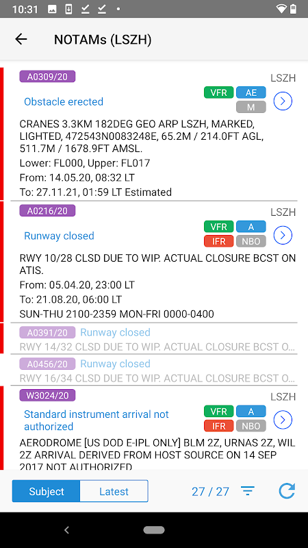 ایپ میں بلٹ میں ہوائی اڈے کا ڈیٹا بیس شامل کیا گیا ہے ، جس میں ہوائی اڈے کا بنیادی ڈیٹا جیسے رن وے * ، طلوع آفتاب / غروب آفتاب ، گودھولی کے اوقات ، ٹائم زونز وغیرہ شامل ہیں۔