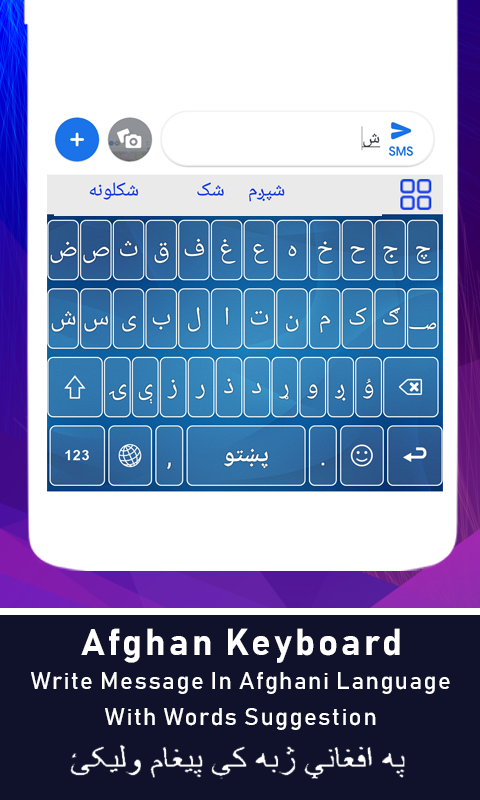 The new Afghan Pashto English Keyboard is the new way to use your default mobile keyboard with multiple colors, beautiful backgrounds, emoji keyboard for mobile and much more. This is best keyboard theme that likely compatible with android keyboard and best app to customize keyboard with new look. Download latest colorful theme keyboard with keyboard wallpaper to give change your phone look into a new way.