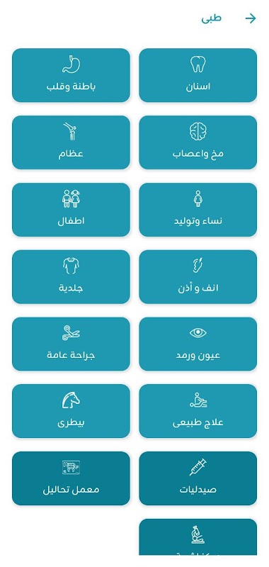 يتكون من العديد من التخصصات الطبية منها مثلا تخصصات كالعيون والانف والاذن والباطنة والعظام