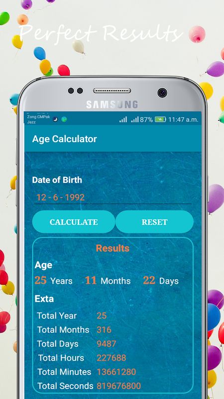 * Calculate your perfect age in years, months and days.