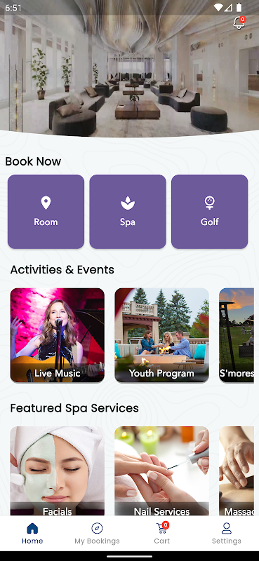 • اگر متعلقہ Agilysys حل فعال ہے، مہمان نوازی کی تنظیمیں تمام پراپرٹی کو دیکھنے، بک کرنے اور سفر کے پروگراموں کو تبدیل کرنے کے لیے مہمان ایپ تک رسائی فراہم کر سکتی ہیں۔ مثال کے طور پر، اگر Agilysys PMS فعال ہے تو مہمان کمرے بک کر سکتے ہیں، اگر Agilysys Golf فعال ہے تو ٹی ٹائم ریزرو کر سکتے ہیں، اور اگر Agilysys Spa فعال ہے تو سپا سروسز کی درخواست کر سکتے ہیں۔
