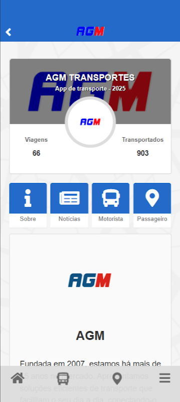 O aplicativo AGM se dispõe como uma ferramenta digital para a criação de viagens, ajudando motoristas a gerenciar passageiros, se comunicar com operadores e etc.
