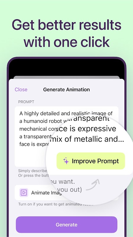 جدید ترین ٹیکنالوجی کا استعمال کرتے ہوئے، آپ اپنی تصاویر کو متحرک کر سکتے ہیں، انہیں متحرک بصری میں تبدیل کر سکتے ہیں جو توجہ حاصل کر لیتے ہیں۔ چاہے اس میں لطیف حرکات شامل ہوں، دلکش اثرات پیدا کرنا ہوں، یا آپ کی تصویروں میں مخصوص عناصر کو متحرک کرنا ہو، یہ خصوصیت کہانی سنانے اور مشغولیت کو بڑھاتی ہے۔ پریزنٹیشنز، سوشل میڈیا مواد، یا ذاتی منصوبوں کے لیے بہترین!