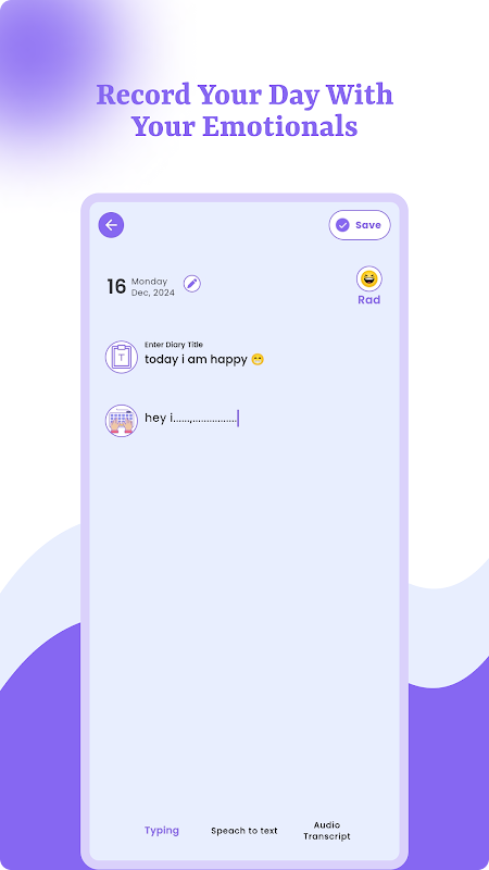 AI کے ساتھ آڈیو جرنلنگ: اپنی آواز کو ریکارڈ کریں، اور ہمارے AI کو اسے ٹیکسٹ جرنل کے اندراج میں نقل کرنے دیں۔ آڈیو آپ کے لیے کسی بھی وقت دوبارہ دیکھنے کے لیے محفوظ کیا جاتا ہے۔