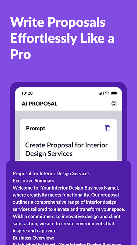 چاہے آپ ایک سٹارٹ اپ کے بانی ہوں، ایک کاروباری، یا پیشہ ور، AI پروپوزل رائٹر، جنریٹر آپ کا تجویز لکھنے کا حتمی ساتھی ہے۔ مسابقتی برتری حاصل کریں جس کے آپ مستحق ہیں اور آج ہی ایپ ڈاؤن لوڈ کریں!