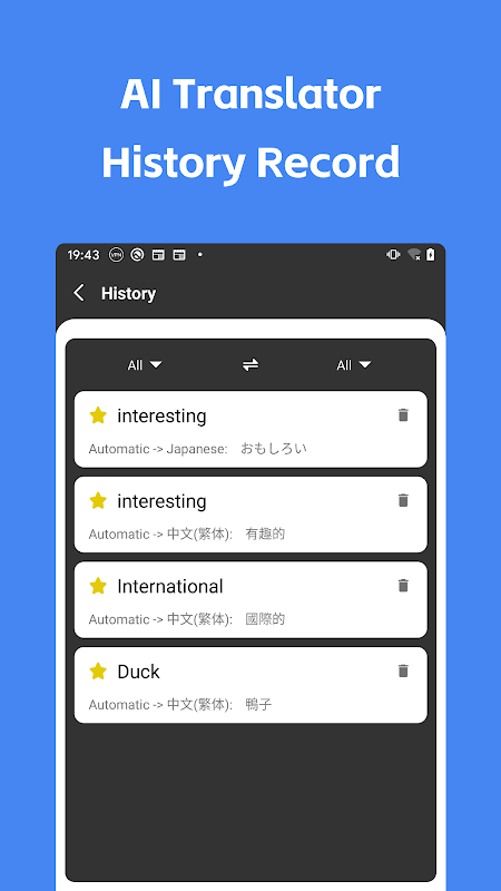 【AI مترجم】 ایک سادہ اور عملی ترجمہ ایپلی کیشن ہے۔ نیا سرکردہ AI ترجمہ انجن ہر چیز کو زیادہ قابل اعتماد اور ضمانت دیتا ہے۔ انٹرفیس ڈیزائن سادہ اور خوبصورت، سائز میں چھوٹا، لیکن فنکشن میں طاقتور ہے۔ جلدی کریں اور اسے ڈاؤن لوڈ کریں اور آزمائیں ~