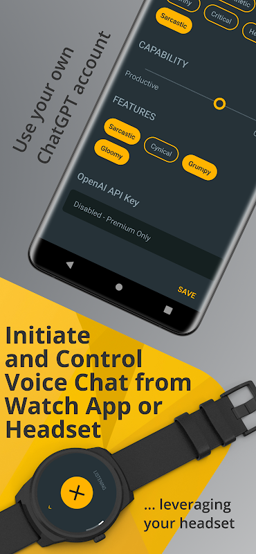 AI GPT وائس اسسٹنٹ، ChatGPT 4/3.5 API ماڈل، Wear OS، Headset، API Key