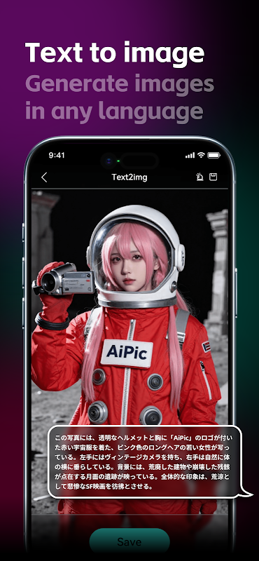 • کسی بھی زبان (انگریزی، چینی، جاپانی، ہسپانوی، وغیرہ) میں کسی بھی ٹیکسٹ پرامپٹ سے شاندار آرٹ ورک بنائیں۔