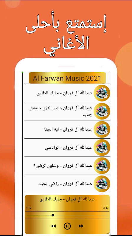 -اذا كنت من محبي اغاني عبدالله آل فروان وتبحث عن تطبيق يحتوي على الأغاني الحصرية والجديدة،