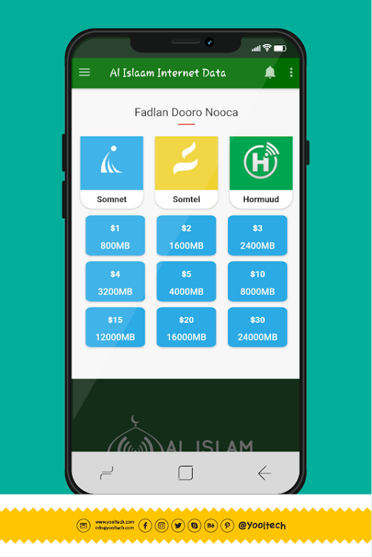 Ka iibso Al Islaam Internet Data App xirmooyinka Somnet Data oo Raqiis ah