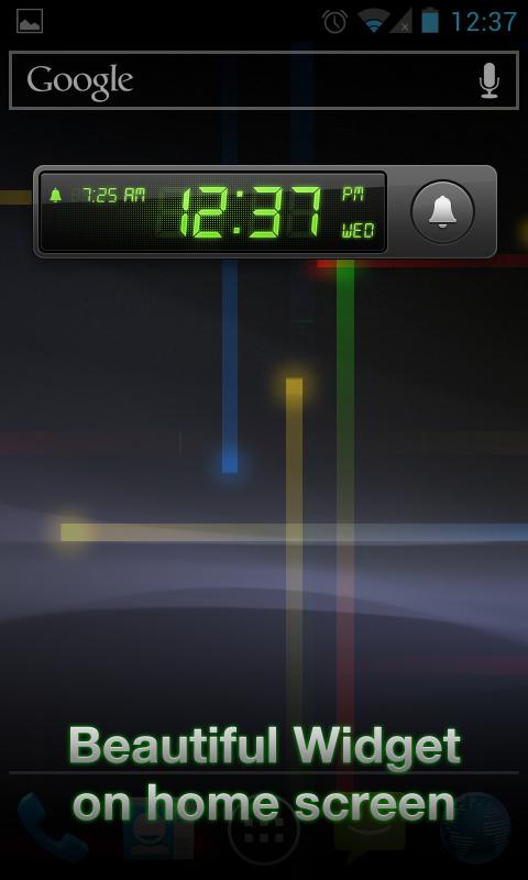 Alarm Clock Free turns your android into a beautiful digital clock and alarm clock for free!