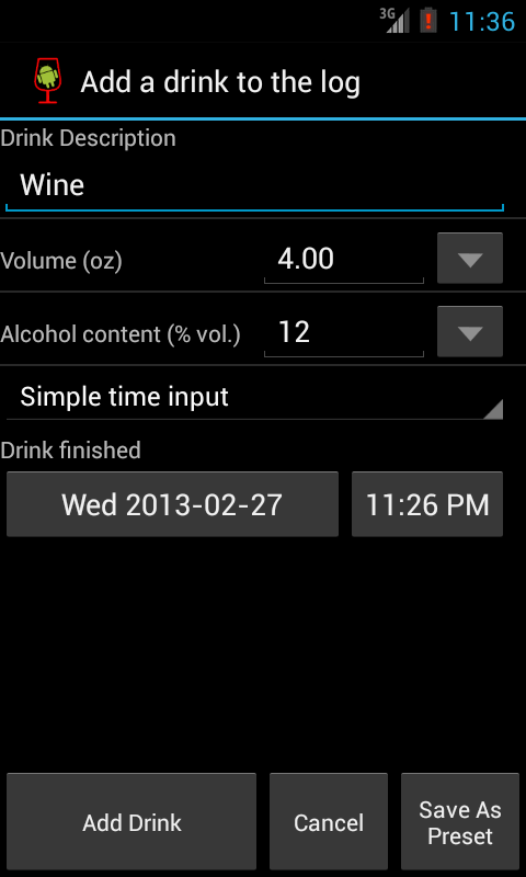 AlcoDroid is an alcohol consumption tracker, drinks diary and blood alcohol content calculator. AlcoDroid helps you get a better handle of what you drink and change your drinking habits. Optionally it also tracks costs of your drinks.
