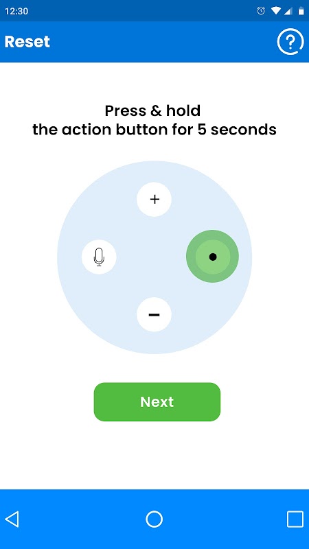 روشنی کی انگوٹھی خود بخود نارنجی رنگ میں بدل جائے گی، آلہ سیٹ اپ موڈ میں داخل ہو گیا ہے۔