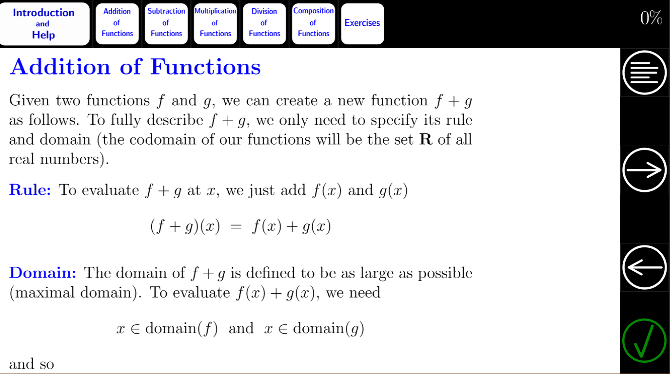 * ریاضی کا مطالعہ مثالوں اور مشقوں کے ذریعے کام کرنے سے بہترین ہوتا ہے۔ اس ٹیوٹوریل میں بہت سی متعامل مثالیں اور مشقیں ہیں جنہیں 100% ترقی حاصل کرنے کے لیے مکمل کرنا ضروری ہے۔