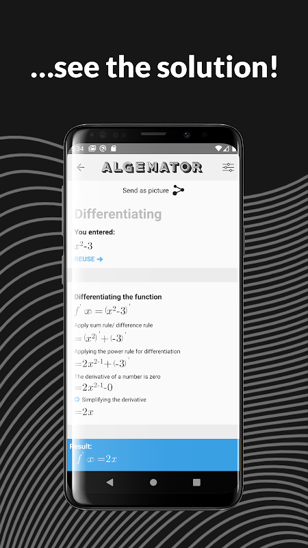 الجیمٹر آپ کے ریاضی کے کاموں کو حل کرتا ہے۔ نہ صرف یہ بلکہ یہ آپ کو قدم بہ قدم حل بھی فراہم کرتا ہے۔ الجیمٹر دستی اضافے یا مساوات کو حل کرنے جیسی بنیادی باتوں سے لے کر افعال یا میٹرکس جیسے زیادہ جدید افعال تک پیش کرتا ہے۔ الجیمٹر حتی کہ ہندسی شکلوں کی بھی حمایت کرتا ہے۔ بس جو آپ فارم کے بارے میں جانتے ہو اسے داخل کریں اور الجیمٹر باقی کا حساب لگائیں گے!