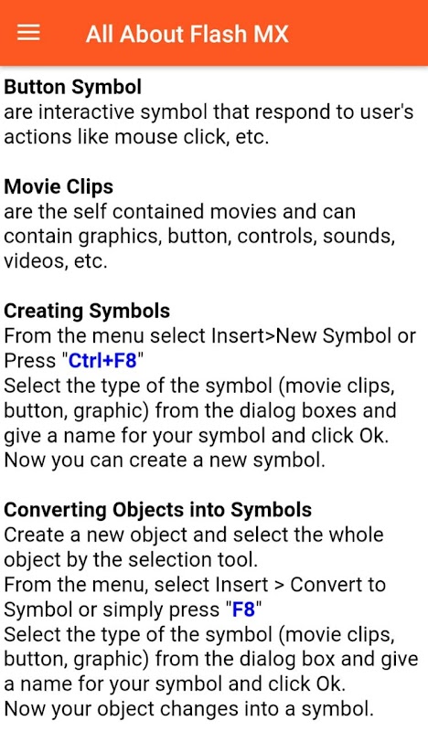 Learn Flash MX step by step. Become a Pro. This app contains Offline Tutorial
