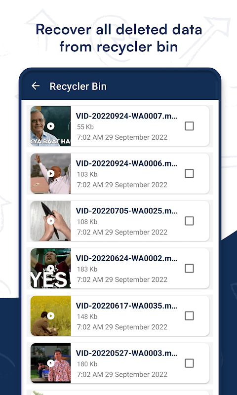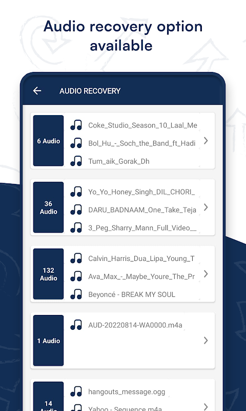اب اس کے ذریعے تمام ڈیٹا فائل ریکوری ایپ صارف اس ریکوری ایپ کے ذریعے بغیر کسی محنت کے تمام ڈیلیٹ شدہ تصاویر، میوزک، دستاویزات اور ویڈیوز کو آسانی سے ریکور کر سکتا ہے۔ یہ مفت تمام ڈیٹا فائل صارف کے ڈیٹا کو بازیافت کرتی ہے جو موبائل یا SD سے حذف ہو چکا ہے اور بڑے اطمینان کے ساتھ کہ آپ کو بے حد پسند آئے گا۔ صارف اس ویڈیو ریکوری کے ذریعے صرف ایک کلک سے اپنی کھوئی ہوئی تصاویر، ویڈیو یا دستاویزات کو اپنے فون کی میموری میں واپس لا سکتا ہے۔ اس کے استعمال سے تمام ڈیٹا ٹائپ ریکوری صارف آسانی سے تمام اہم تصاویر، میوزک ڈاکومنٹ اور ویڈیوز کو بحال کر سکتا ہے جن کی صارف کو فوری اور ترجیحی بنیاد پر ضرورت ہے۔