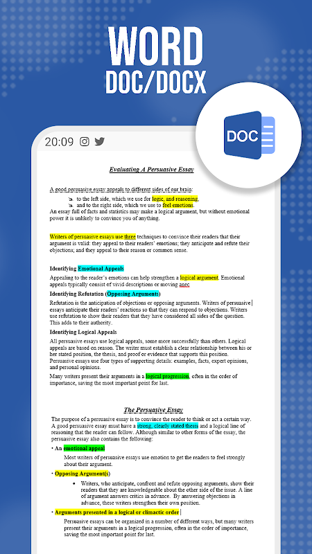 - ڈاکس ریڈر، ورڈ دستاویزات پڑھیں