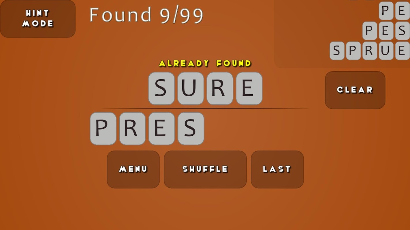 2. A casual untimed mode - Take all the time you want and find words at your leisure. When you decide you are finished, tap "MENU", then "Quit To Summary" to see how many of the possibilities you found.