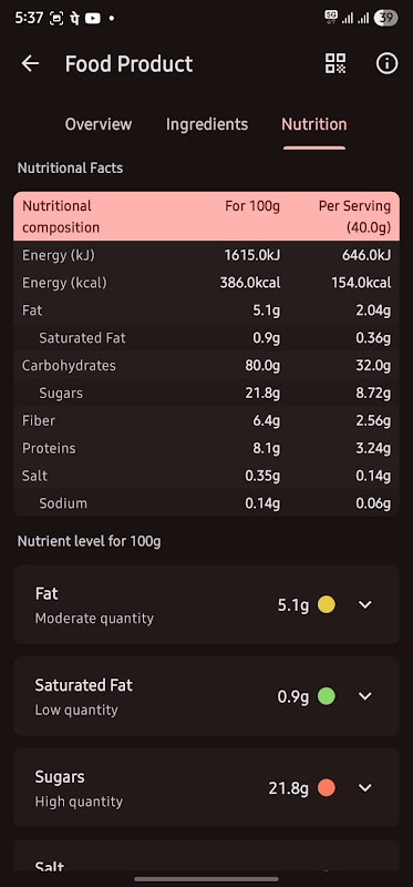 • کھانے کی مصنوعات کے بارکوڈز کو اسکین کریں تاکہ ان کی ساخت کے بارے میں معلومات حاصل کی جا سکیں۔