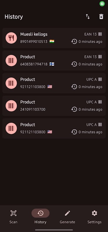 • ہسٹری ٹول کے ساتھ اپنے تمام اسکین شدہ بارکوڈز کا ٹریک رکھیں۔