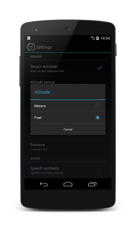 (*) Ces fonctions nécessitent un capteur de type barométrique dans votre appareil android : tablette Motorola Xoom 1, Google Samsung Nexus, Google LG Nexus 4, Google LG Nexus 5, Samsung Galaxy Note 2, Samsung Galaxy S4, ...