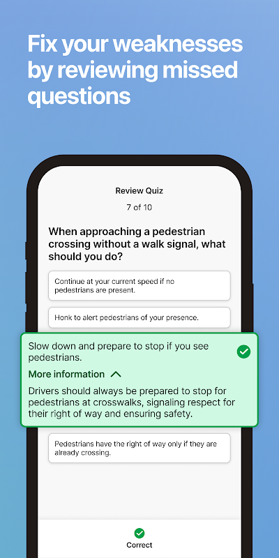 🧐2,000 سے زیادہ سوالات: سوالات کے ہمارے بڑے تالاب میں غوطہ لگائیں، یہ تمام AMA پریکٹس ٹیسٹ کے بعد بنائے گئے ہیں اور حقیقی البرٹا ڈرائیونگ ٹیسٹ کی عکس بندی کے لیے تیار کیے گئے ہیں۔ اور سب سے بہتر، یہ مکمل طور پر مفت ہے!
