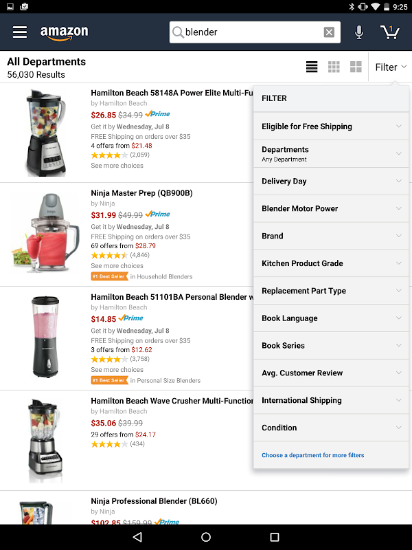 ایمیزون ایپ برائے اینڈروئیڈ ٹیبلٹس کے ذریعہ ، آپ آسانی سے ایمیزون کے لاکھوں مصنوعات کی کیٹلاگ میں تلاش کر سکتے ہیں تاکہ آپ جو چیزیں تلاش کر رہے ہو اسے جلدی سے ڈھونڈیں ، برائوز اور ڈیپارٹمنٹ کے ذریعہ خریداری کرسکیں ، اور دن کے بجلی کے سودے اور سودے دیکھیں۔ پروڈکٹ کی تفصیلات کے صفحات مفید مصنوعات کی معلومات فراہم کرتے ہیں اور آپ کو پروڈکٹ کے جائزے پڑھنے اور لکھنے کی اجازت دیتے ہیں یا دوستوں کے ساتھ مصنوعات شیئر کرتے ہیں۔