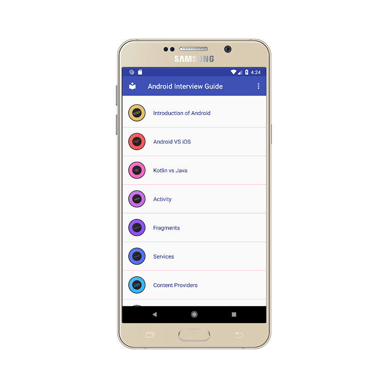 Android Interview Guide(AIG) has a collection of more than 300+ questions with answers asked in the interview for freshers and experienced (Programming, Scenario-Based, Fundamentals, Performance Tunning based Question and Answer). This App is intended to help Android Career Aspirants to prepare for the interview on Android-related technologies.