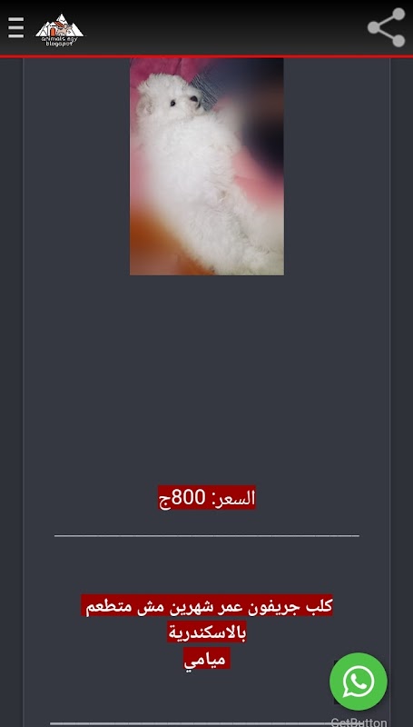 تطبيق animals Egy Blogspot هو تطبيق اعلانات مبوبة يمكنك من خلاله بيع حيوانك او عرضه للتبني وأيضاً يمكنك ان تقوم بتبني او شراء حيوان، ويقدم لك التطبيق الكثير من انواع الحيوانات الأليفة في كافة المحافظات