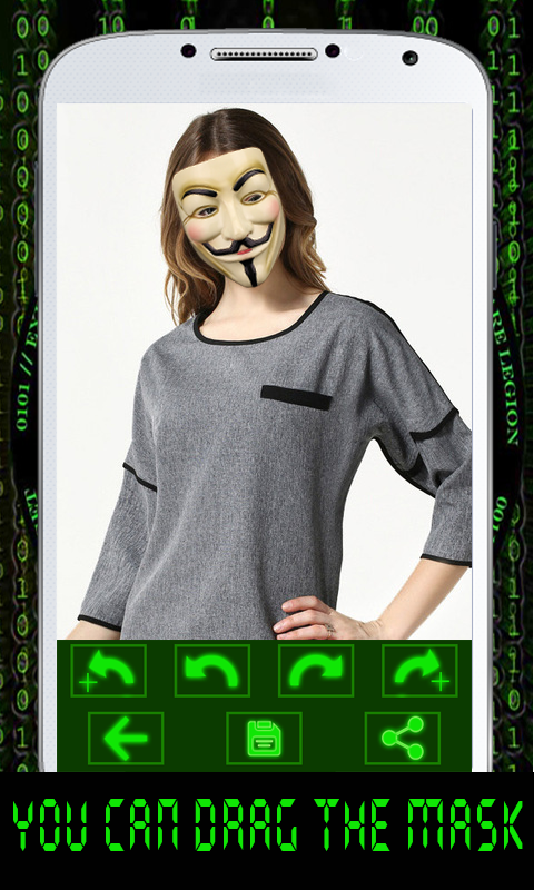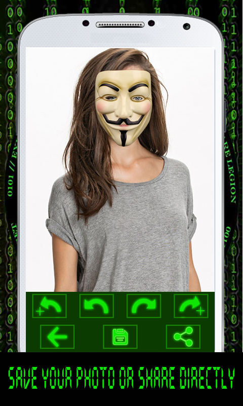 Put cool Anonymous Mask over your face. Easy to use, choose a photo from gallery or take new one from the camera then drag, zoom in, zoom out or rotate as you like to turn your boring photos stunning with V for Vendetta Mask.