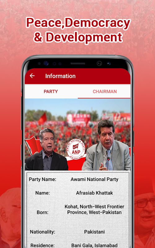 ANP Election 2018 app developed considering the rise in popularity of Awami National Party and their agenda against the political leadership of Pakistan Muslim League (N) and with other parties. This App covers all ANP Songs, ANP Photo frame, ANP history. Revolutionary movement started by Talking Afrasiab Khattak under the slogan of Peace, Democracy, and Development, no doubt has mobilized masses. Credit goes to incredible ANP that has changed the whole paradigm of politics. Now whether there’s some street protest or the stage is set for some big Dharna against Nawaz Sharif, Shahbaz Sharif, PML (N), PTI, PMLQ, and PPP as a whole the echo of ANP Songs always reach in Awami National Party worker’s ears.