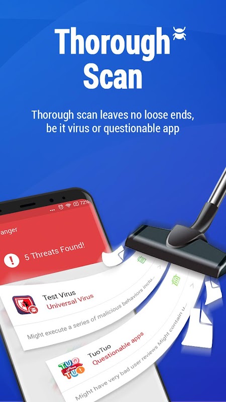 ►Professional engine: Professional search algorithm both on device and Cloud enables rapid scanning and in-depth virus detection.