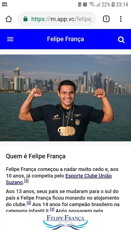 O App Felipe França, disponibilizará ferramentas eficazes no esporte, principalmente o esporte aquático.
