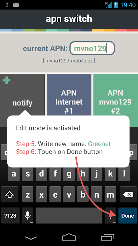 [✔] ایپ شو APN کا پہلا حصہ - جیسے۔ ای پی این کے لئے internet.operator.xy 'انٹرنیٹ' دکھایا گیا ہے۔