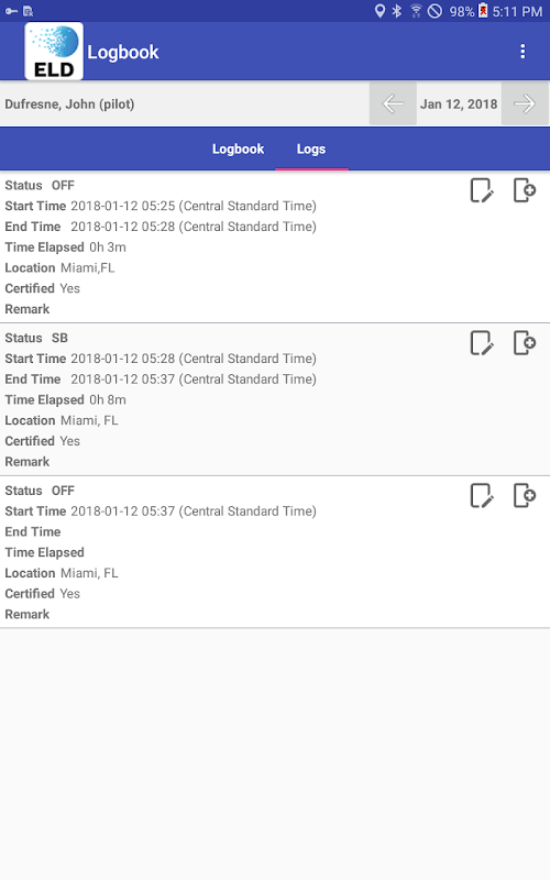 -Mobile device permits duty status changes only when the vehicle is at rest