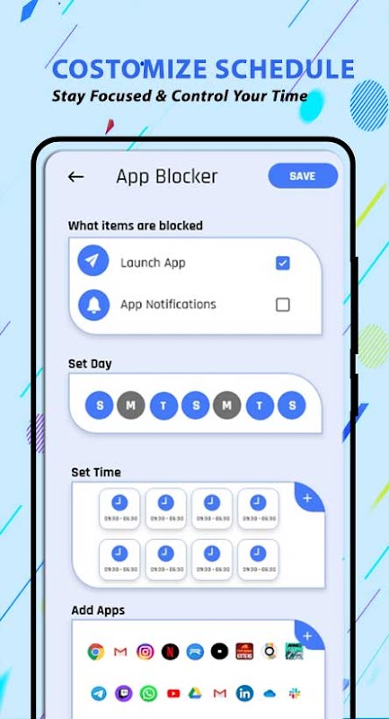 Our self-control app AppBlock - Stay Focused (App Blocker & Web Blocker) is a really easy-to-use productivity app. Download it & simply select the apps and websites that may distract you while you have important work to do. Being not only a social network limiter, you can also:
