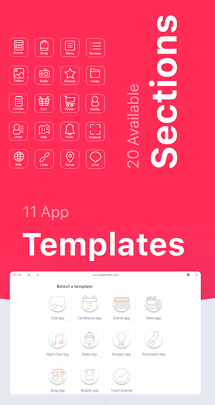 Choose from the 20+ available templates to make your app.