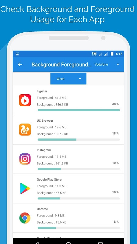 • Check Background and foreground usage for each app.