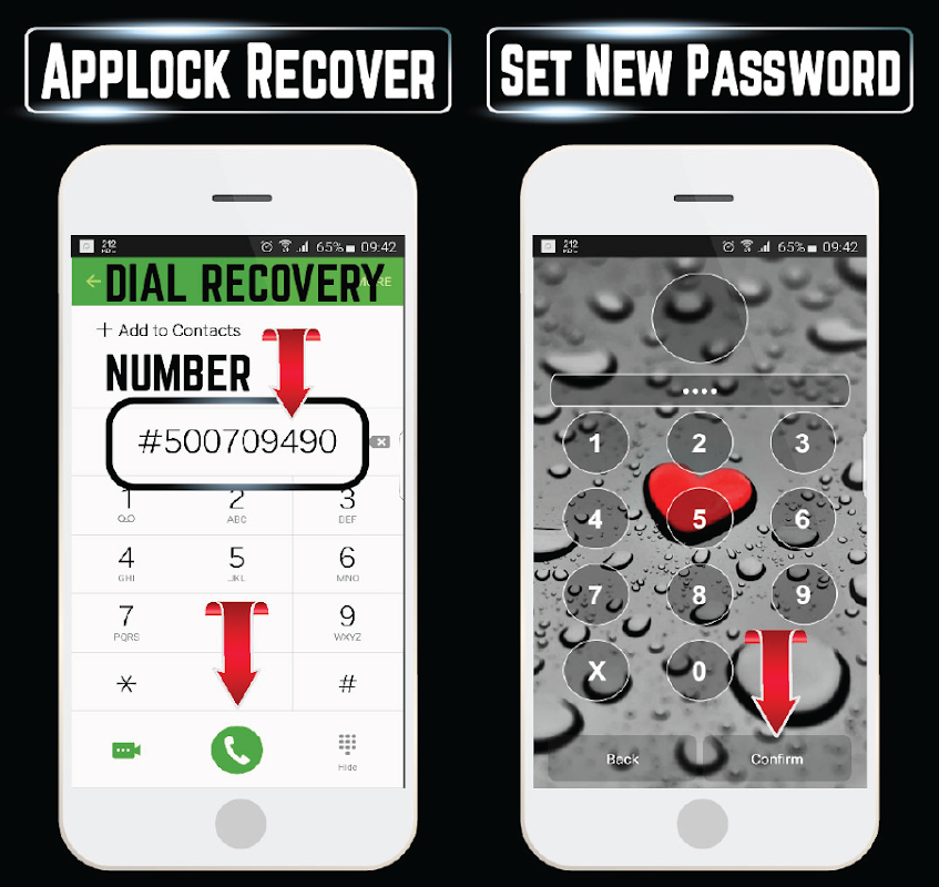 1.When you Download app,applock gives you recover key password, Enter #recover key password (for eg.#652262625) in your dial pad, and tap Dial Call button.Will open Re-set Menu of Password, reset new pin and enjoy app.