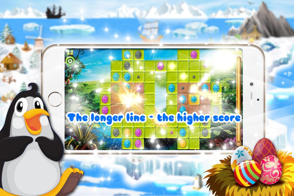 The main principle of the game practically stayed the same, only instead of just matching several stones of a single color in a line, you need to match eggs to destroy them over a selection special tiles.