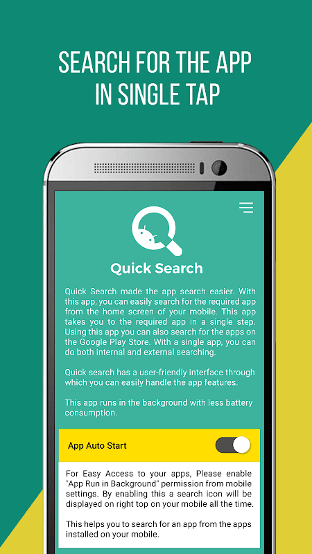 AppsFinder made the app search easier. With this app, you can easily search for the required app from the home screen of your mobile. This app takes you to the required app in a single step. Using this app you can also search for the apps on the Google Play Store. With a single app, you can do both internal and external searching.