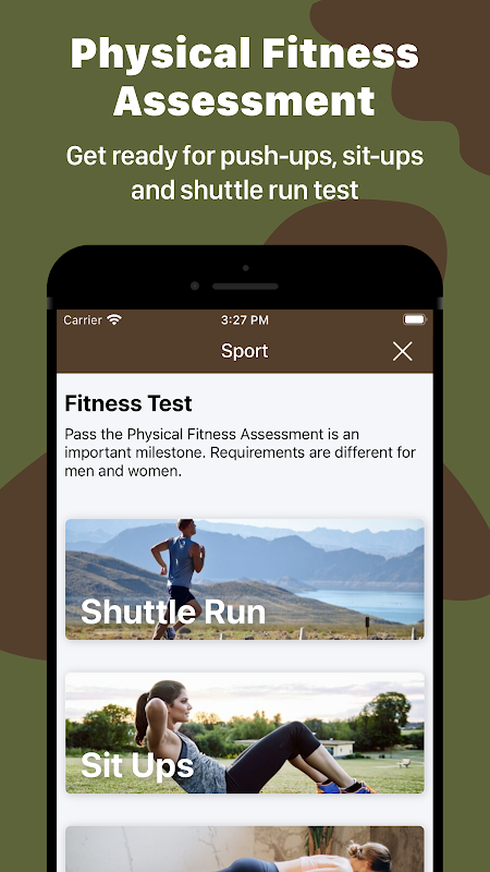 ADF فعال فٹنس تیاری کے لیے ہمارا ٹریکر استعمال کریں۔ آسٹریلوی ڈیفنس فورس کی شاخوں کے درمیان جسمانی ضروریات مختلف ہیں۔ فوجی انداز کے پش اپس، سیٹ اپس اور شٹل رن (بیپ ٹیسٹ) کرنے کا طریقہ سیکھیں اور PFA ٹیسٹ پاس کرنے کے لیے اپنی پیشرفت کو ٹریک کریں۔ اب فٹ اور دفاع کے لیے تیار رہیں!
