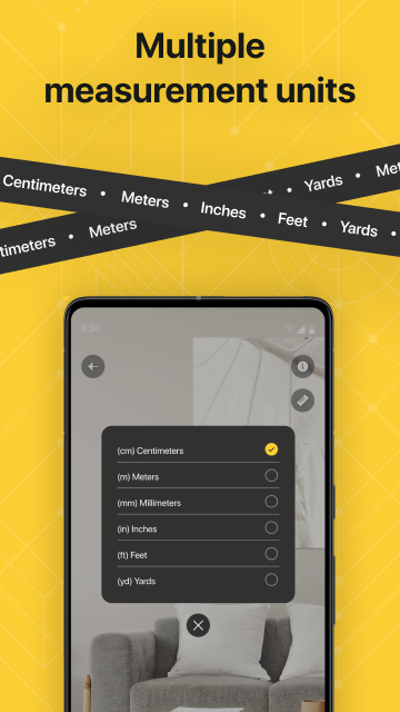 اور چیزوں کو مزید آسان بنانے کے لیے، ایپ پیمائش کی متعدد اکائیوں کو سپورٹ کرتی ہے، لہذا آپ اپنی ضروریات کے مطابق انچ، سینٹی میٹر، ملی میٹر اور مزید کے درمیان سوئچ کر سکتے ہیں۔